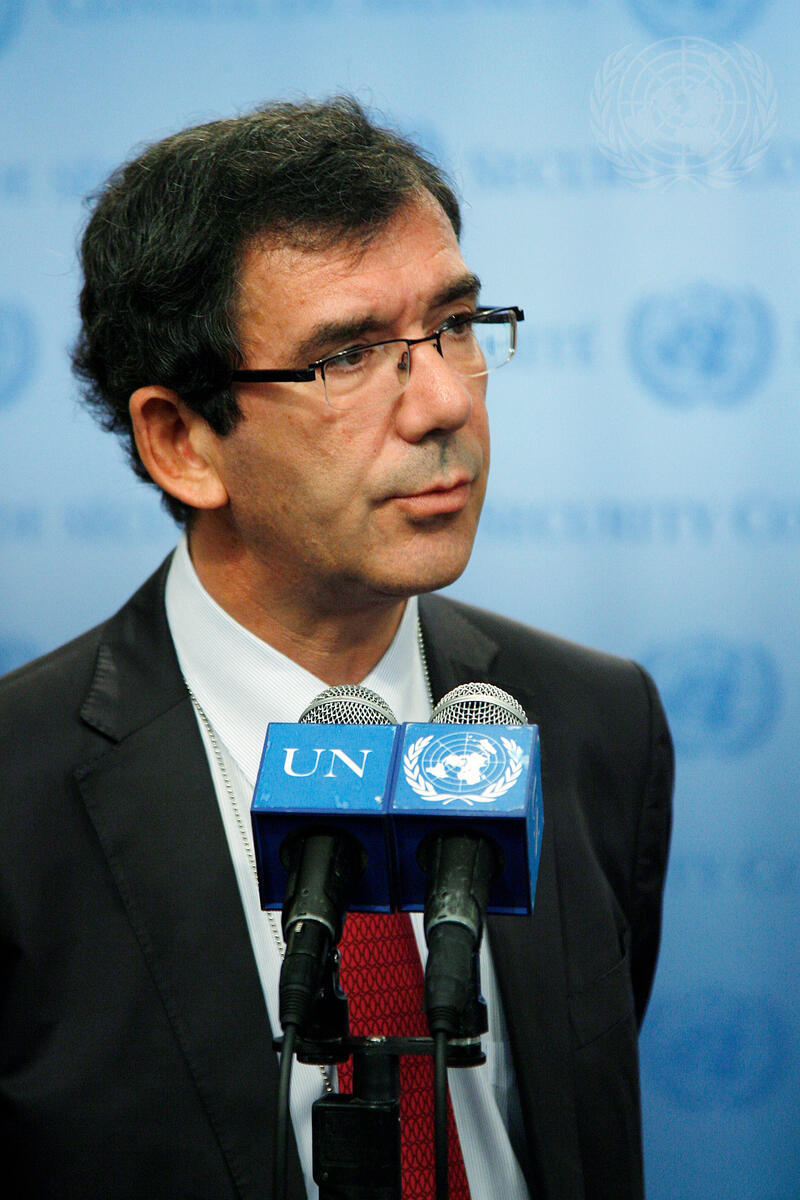Jean-Maurice Ripert, Permanent Representative of the Republic of France to the United Nations, briefs journalists on the developments in the Sudan.