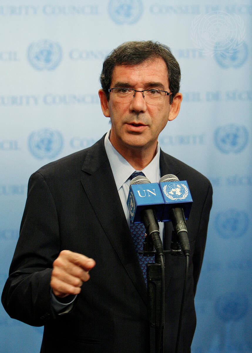 Jean-Maurice Ripert, Permanent Representative of the Republic of France to the United Nations, briefs journalists on the developments in the Sudan and Georgia.