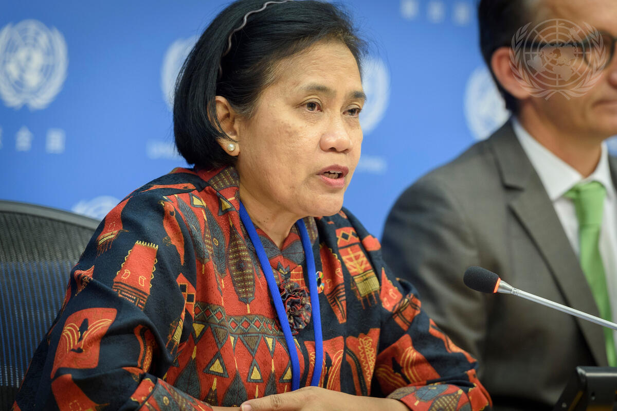 "Endah Murniningtyas, former Deputy Planning Minister of Indonesia and Co-chairs of the Global Sustainable Development Report 2019, briefs journalists on the report as guest at the noon briefing.