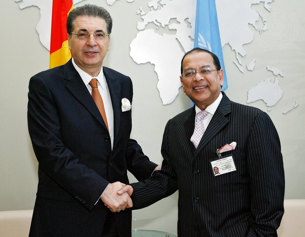 General Assembly President Srgjan Kerim (left) meets with Iftekhar Ahmed Chowdhury, Adviser for Foreign Affairs to the Caretaker Government of Bangladesh.