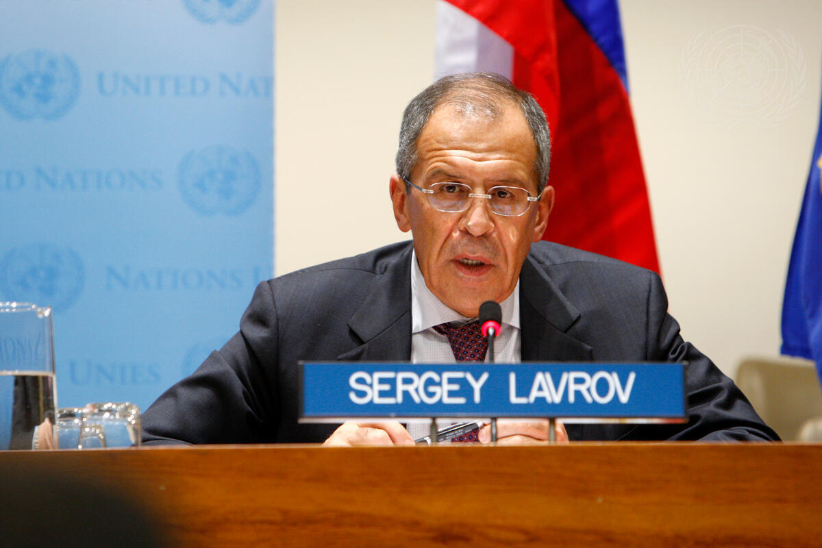 Sergey Viktorovich Lavrov, Minister for Foreign Affairs of the Russian Federation, addresses a joint press conference of the Middle East Quartet (European Union, United Nations, Russian Federation, and United States).