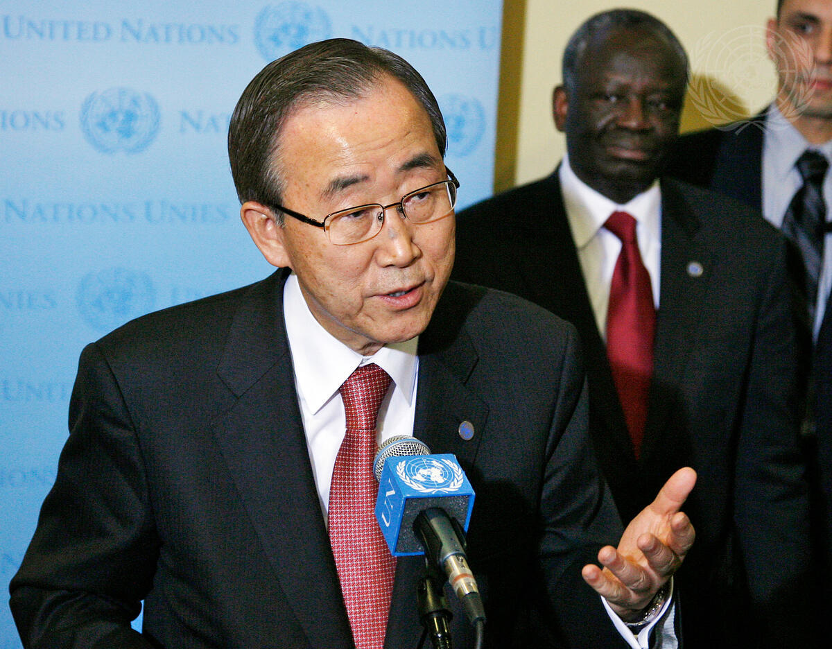 Secretary-General Ban Ki-moon speaks to journalists following a meeting of the friends for Myanmar.