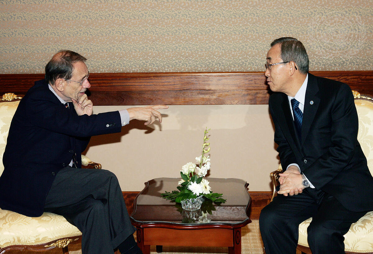 Secretary-General Ban Ki-moon (right) holds talks with Javier Solana, High Representative for the Common Foreign and Security Policy of the European Union.