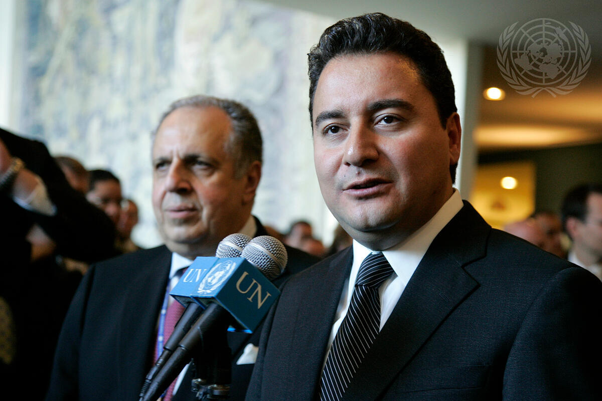 Ali Babacan, Minister for Foreign Affairs of Turkey, speaks to correspondents outside the General Assembly hall after the election his country to a two-year term, as one of the five new non-permanent members of the Security Council.