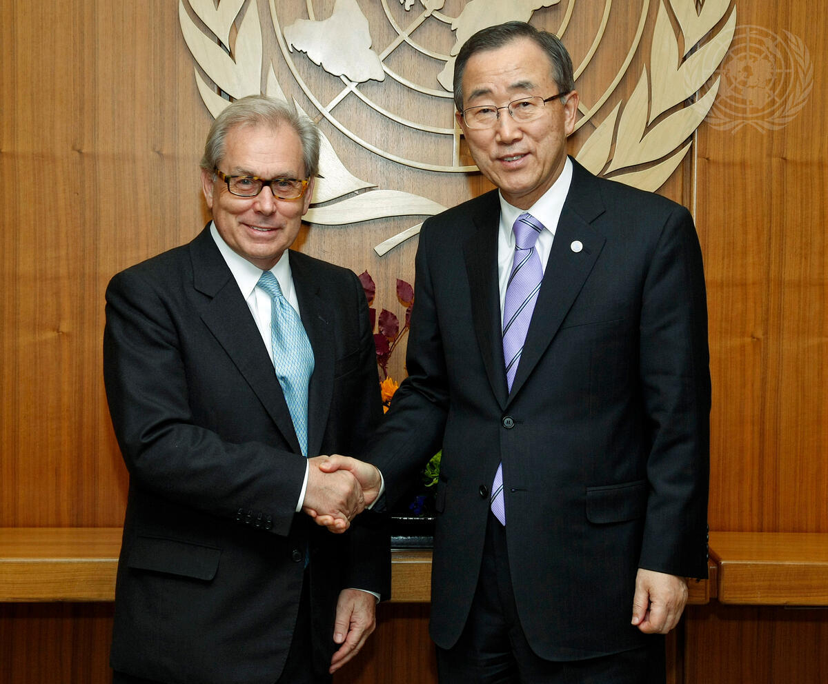 Gerhard Pfanzelter (left), Permanent Representative of Austria to the United Nations, pays a farewell call on Secretary-General Ban Ki-moon.