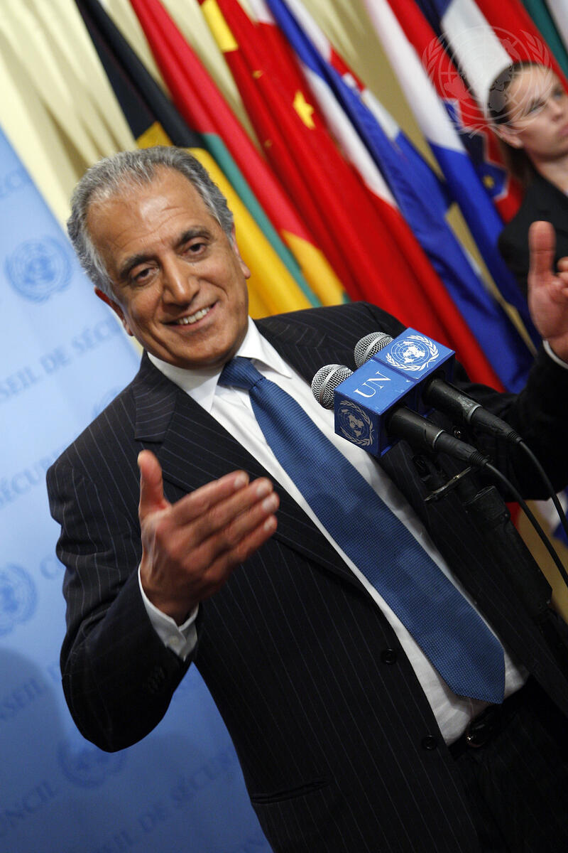 Zalmay Khalilzad, Permanent Representative of the United States of America to the United Nations, briefs the press, following a Security Council meeting on the escalating violence in Georgia's region of Ossetia.