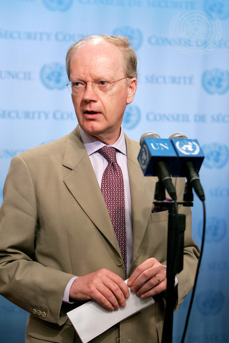 Jan Grauls, Permanent Representative of Belgium to the United Nations and President of the Security Council for August, speaks to the media following a meeting on the situation in the Middle East, including the question of Palestine.