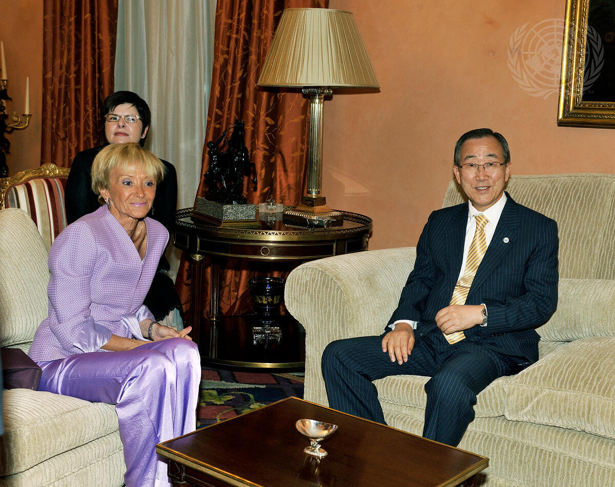 Secretary-General Ban Ki-moon (right) holds a meeting with María Teresa Fernández de la Vega, First Vice-President and Minister of the Presidency of Spain.