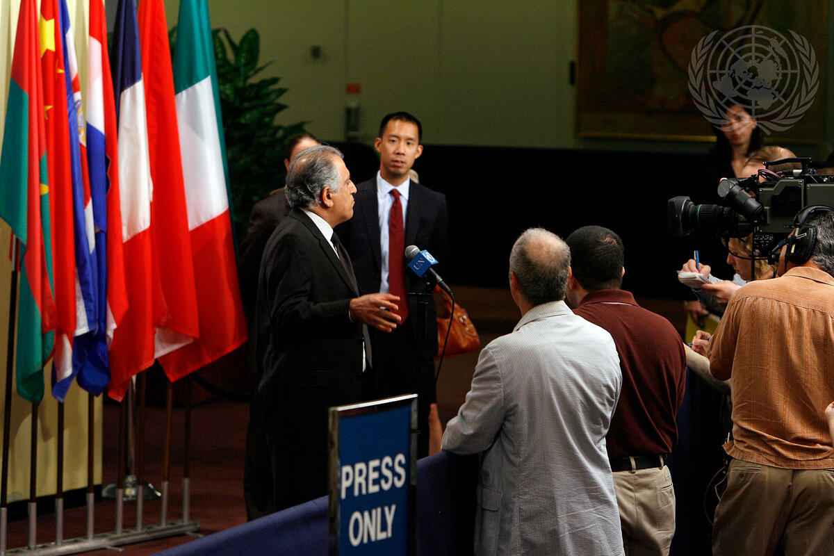 Zalmay Khalilzad, Permanent Representative of the United States of America to the United Nations, briefs journalists on the media allegations against him.