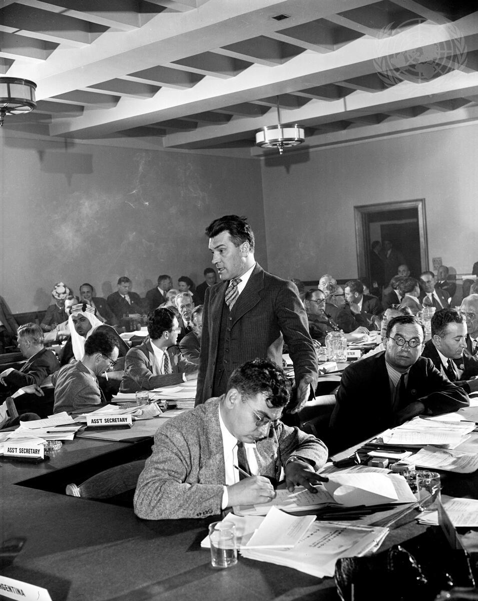 S.K. Zarapkin, member of the Delegation from U.S.S.R., addresses the meeting of Commission I, Committee 2, held on 15 June 1945.