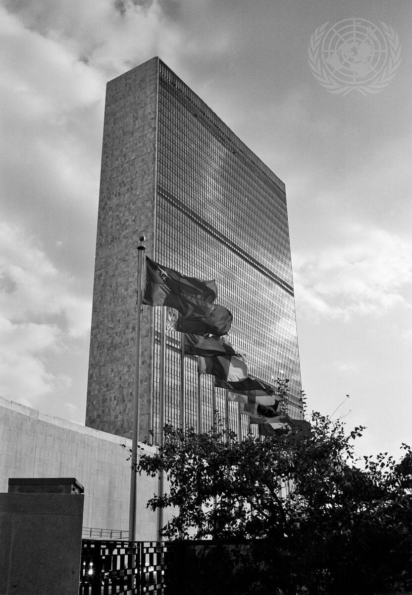 Flags of the 16 New U.N. Member Nations Fly at Headquarters