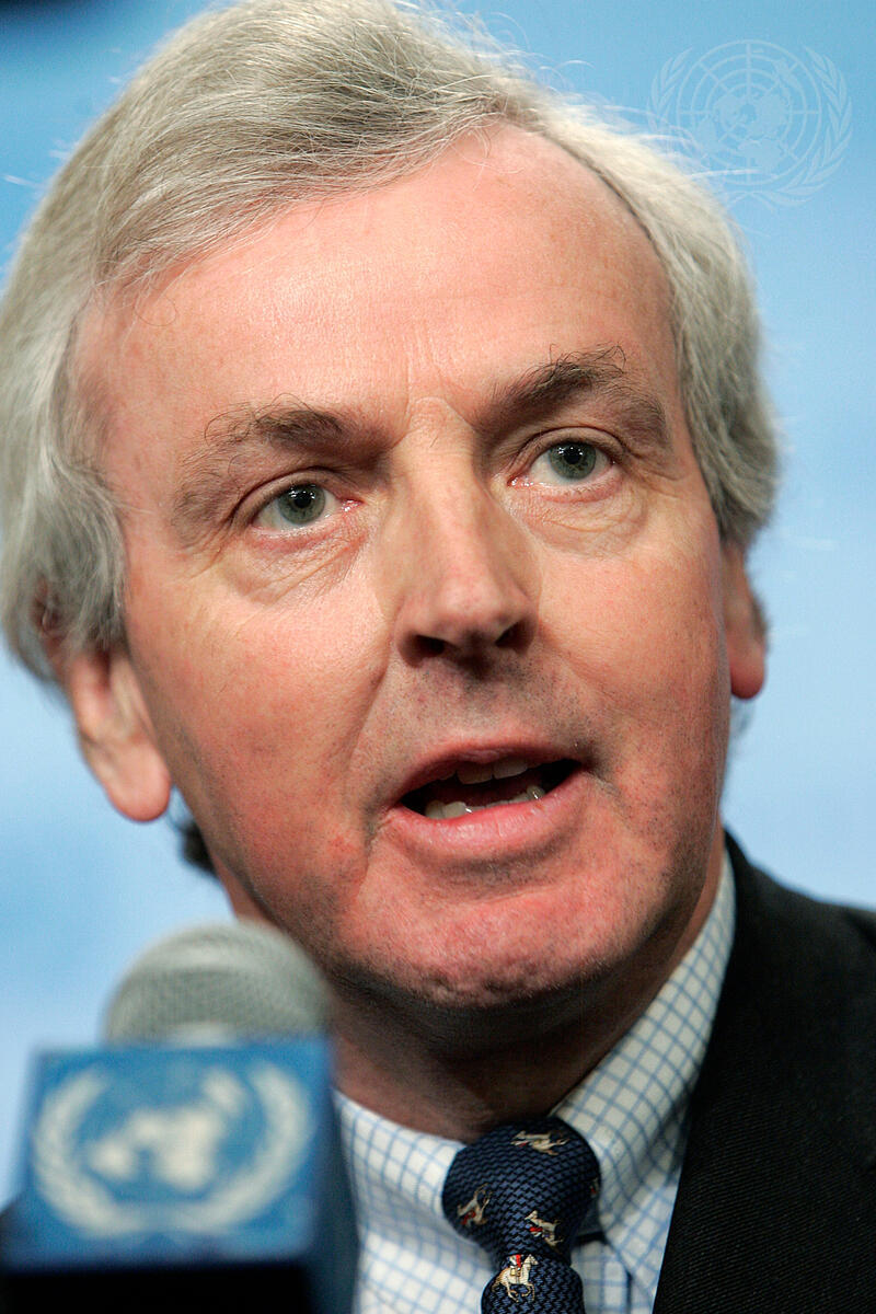 John Holmes, Under-Secretary-General for Humanitarian Affairs and Emergency Relief Coordinator, briefs correspondents, following a meeting of the Security Council on the situation in the Sudan, and the deployment of the African Union-United Nations Hybrid Operation in Darfur.