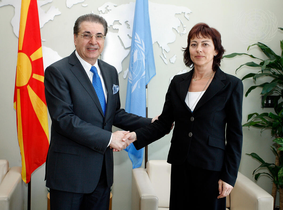 Srgjan Kerim (left), President of the sixty-second session of the General Assembly, meets with Olga Algayerová, Deputy Minister for Foreign Affairs of the Slovak Republic