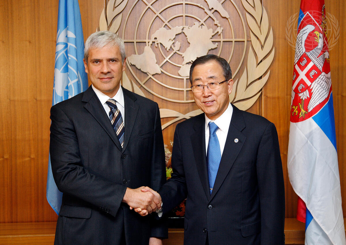 Secretary-General Ban Ki-moon (right) meets with Boris Tadic, President of the Republic of Serbia.