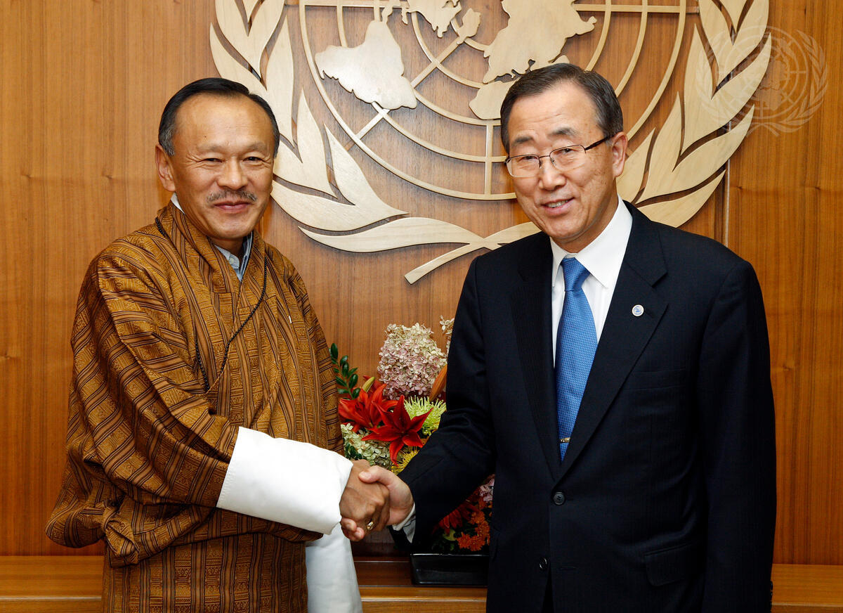Caption Description Secretary-General Ban Ki-moon (right) meets with Lyonchoen Jigmi Yoezer Thinley, Prime Minister of the Kingdom of Bhutan.