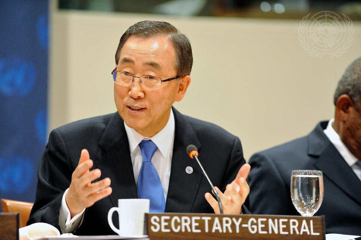 Secretary-General Ban Ki-moon (fourth from left) addresses a high-level roundtable discussion on the food crisis and climate change.