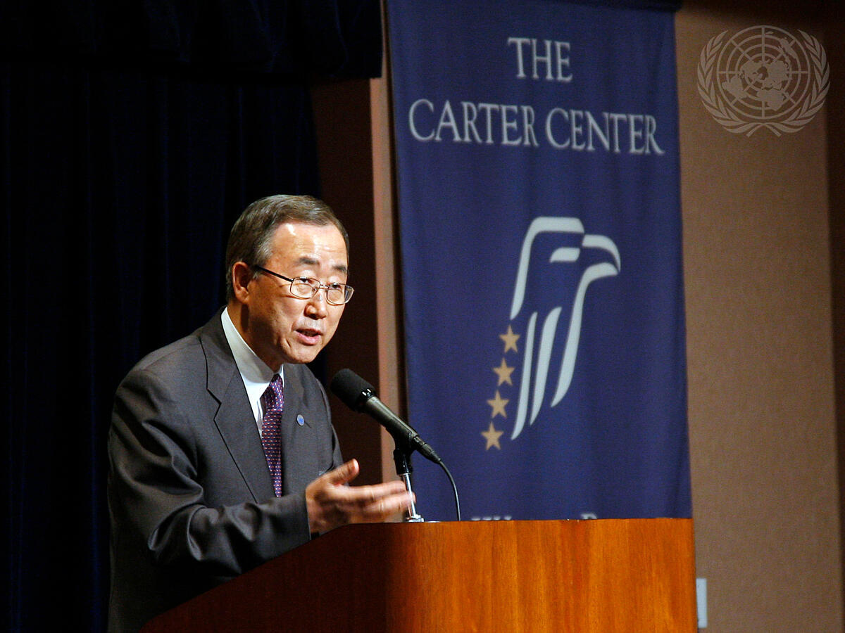 Secretary-General Ban Ki-moon addresses the guests at a dinner hosted by James Earl Carter, former President of the United States of America.