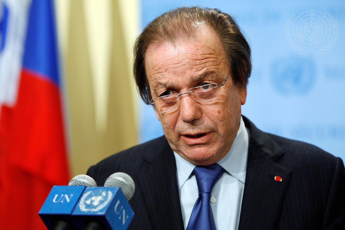 El Mostafa Sahel, Permanent Representative of the Kingdom of Morocco to the United Nations, briefs correspondents, following the decision of the Security Council to extend the mandate of the United Nations Mission for the Referendum in Western Sahara.