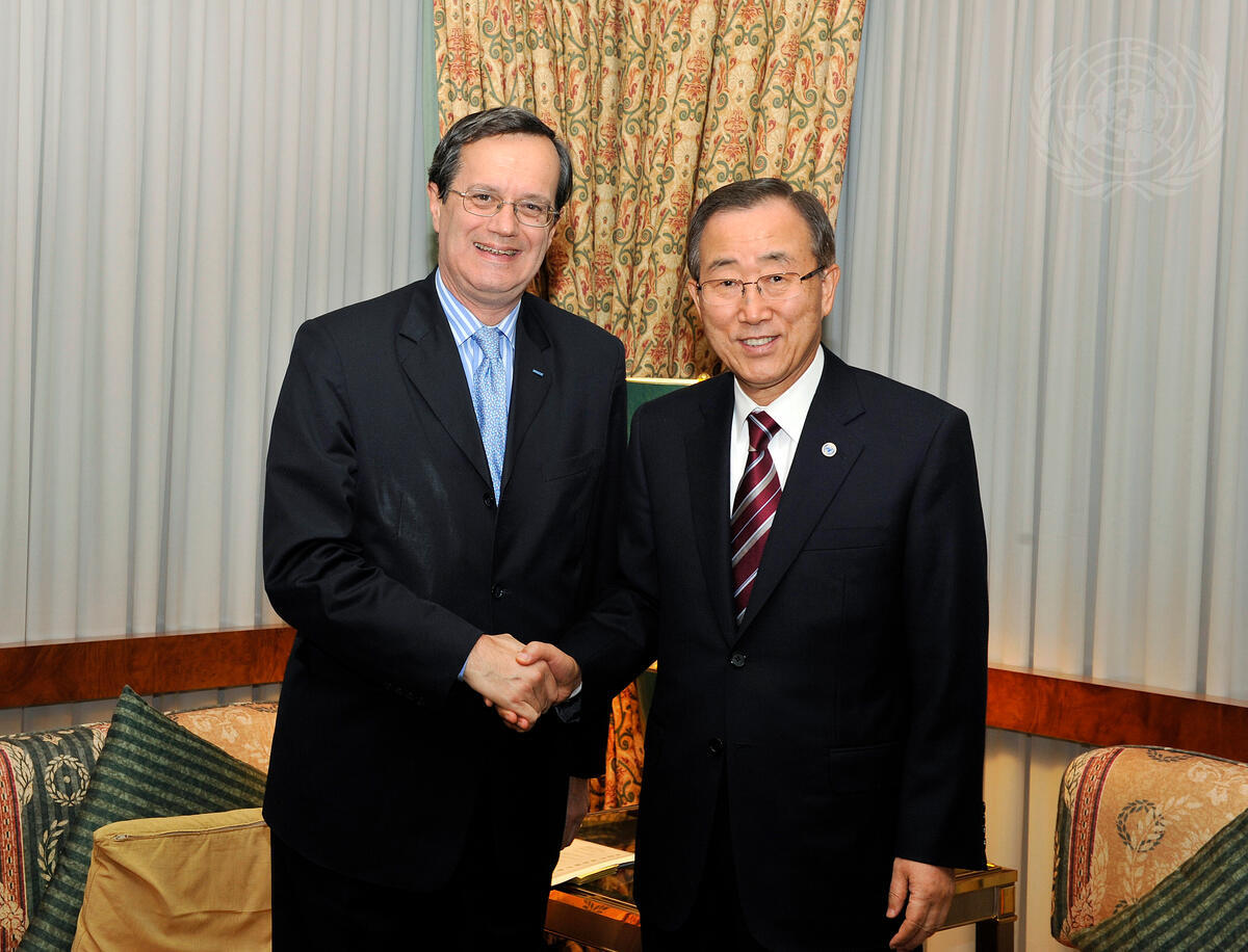 Secretary-General Ban Ki-moon (right) meets with Marc Perrin de Brichambaut, Secretary-General of the Organization for Security and Cooperation in Europe (OSCE).