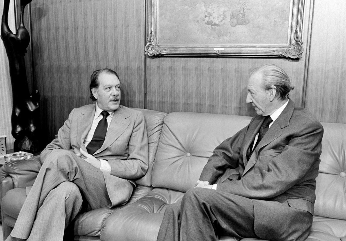 Secretary-General Kurt Waldheim (right) meeting today with Jorge Castañeda, Minister for External Affairs of Mexico in the Secretary-General's office. International affairs were discussed, as well as the forthcoming visit in September of President Jose Lopez Portillo, who is scheduled to address the General Assembly.