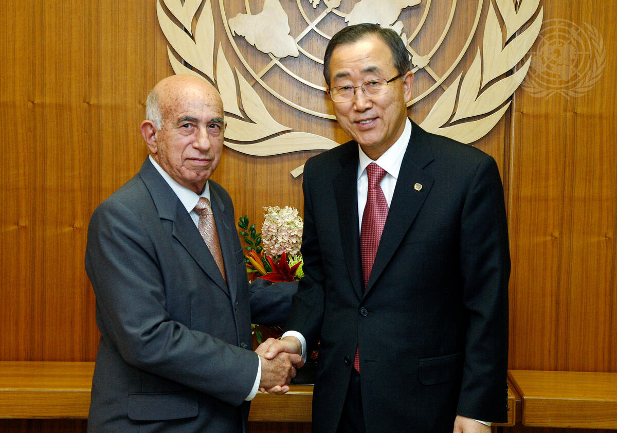 Secretary-General Ban Ki-moon (right) meets with Ricardo Alarcon de Quesada, Vice-President of Cuba.