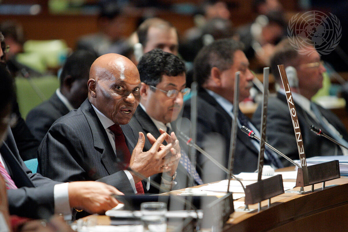 Abdoulaye Wade, President of the Republic of Senegal, addresses a high-level roundtable discussion on the development needs of Africa.