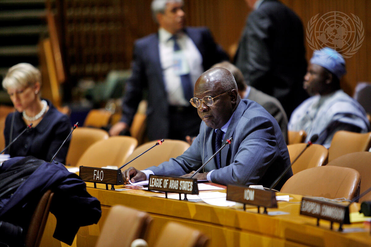 Jacques Diouf, Director-General of the Food and Agriculture Organization (FAO), addresses a high-level roundtable discussion on the development needs of Africa.