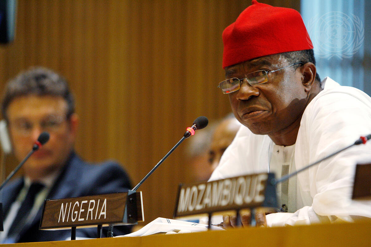 Ojo Maduekwe, Minister for Foreign Affairs of Nigeria, participates in a roundtable discussion on the development needs of Africa.