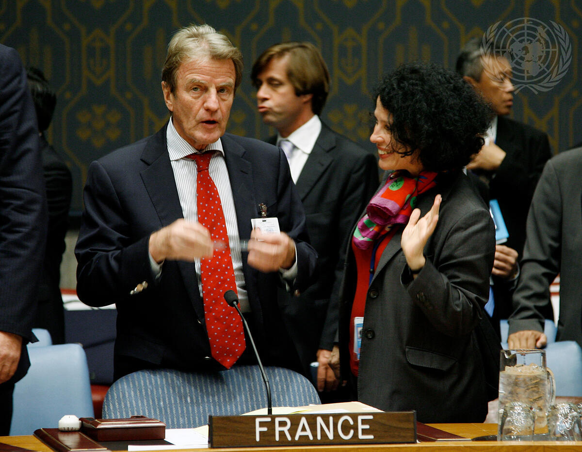 Bernard Kouchner (left), Minister for Foreign Affairs of the Republic of France, attends a high-level meeting of the Security Council on the maintenance of international peace and security, mediation and the settlement of disputes.