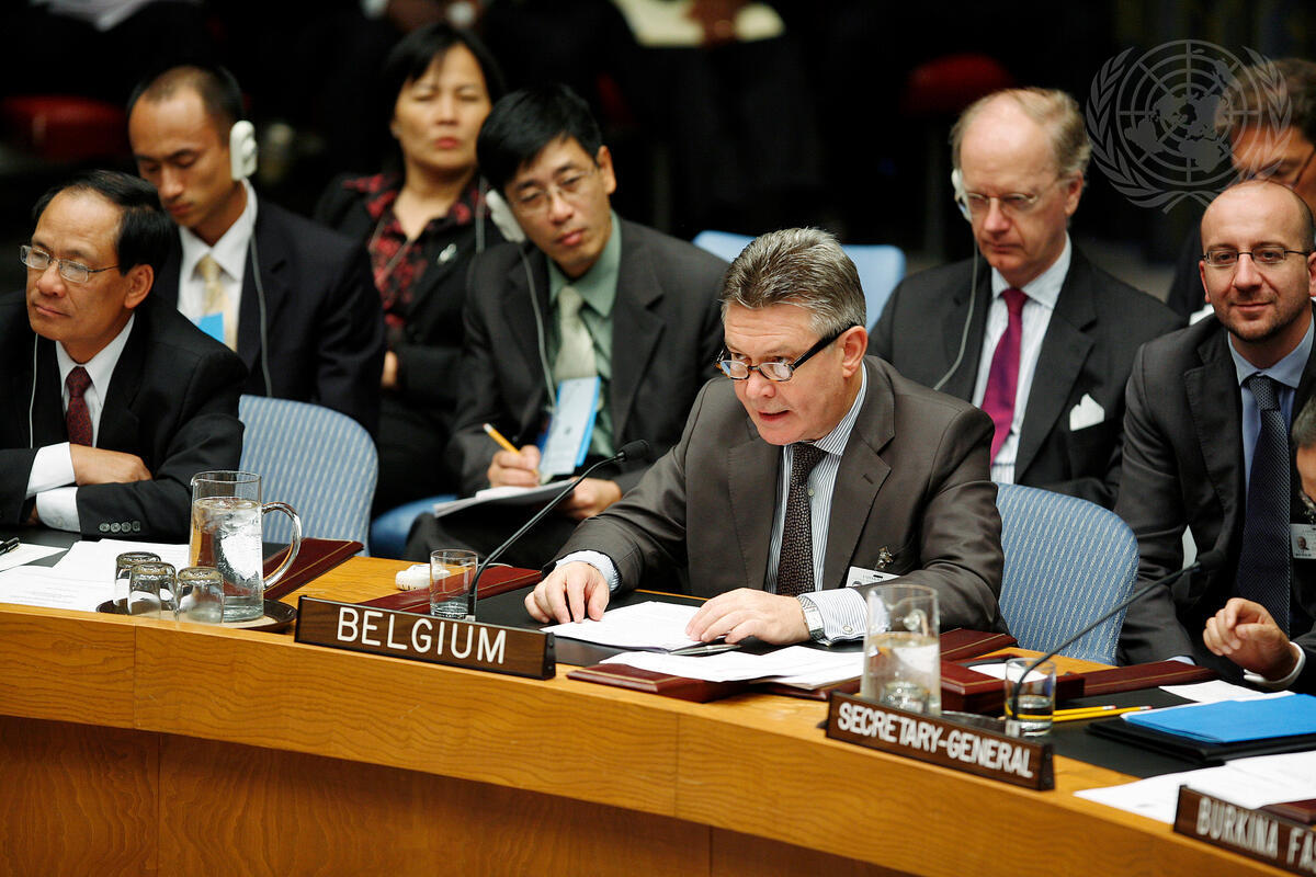 Karel De Gucht, Minister for Foreign Affairs of Belgium, addresses a high-level meeting of the Security Council on the maintenance of international peace and security, mediation and the settlement of disputes.