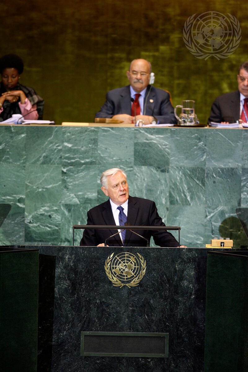 Valdas Adamkus, President of the Republic of Lithuania, addresses the general debate of the sixty-third session of the General Assembly.