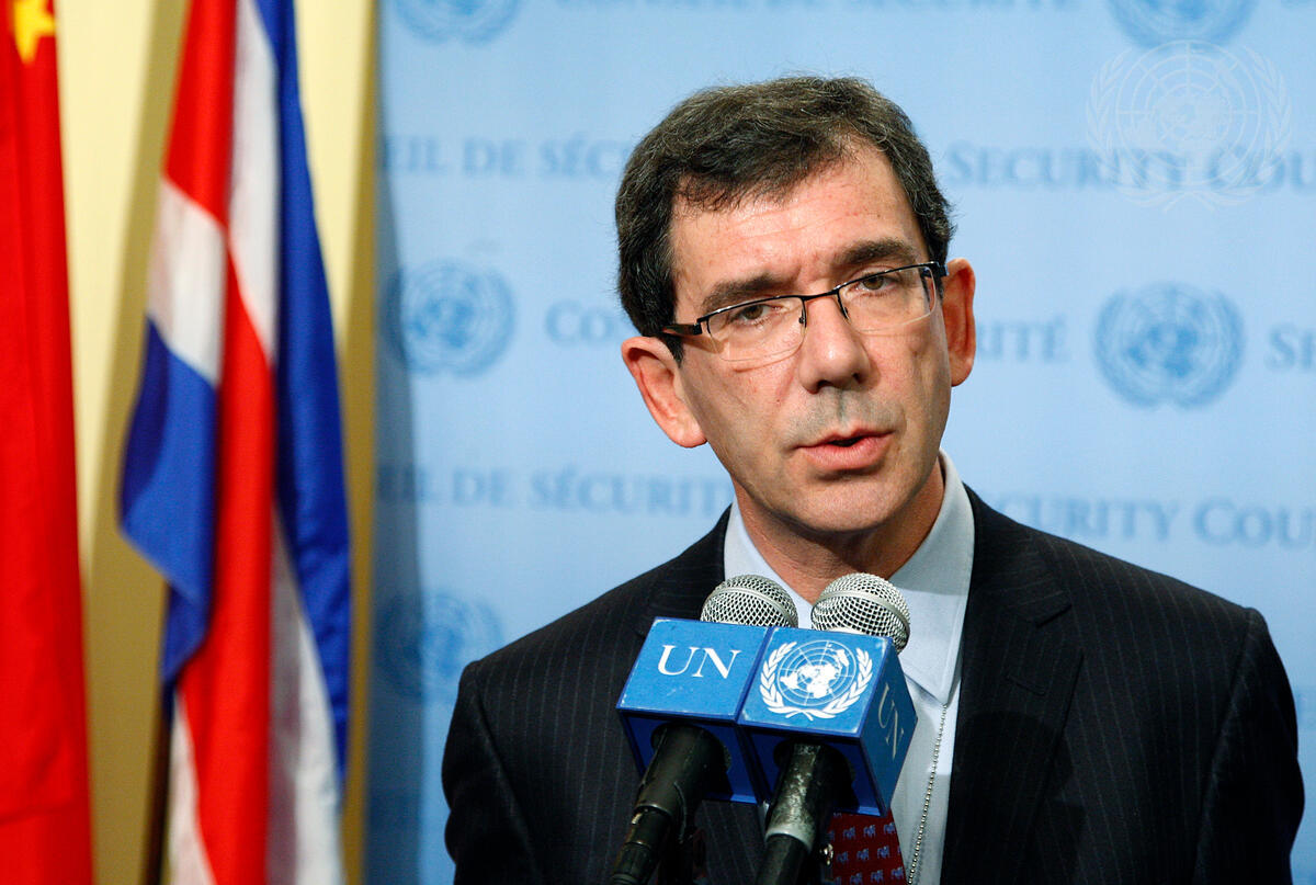 Jean-Maurice Ripert, Permanent Representative of France to the United Nations, briefs the media following the Security Council consultations on the upcoming ministerial session on the Middle East peace process.