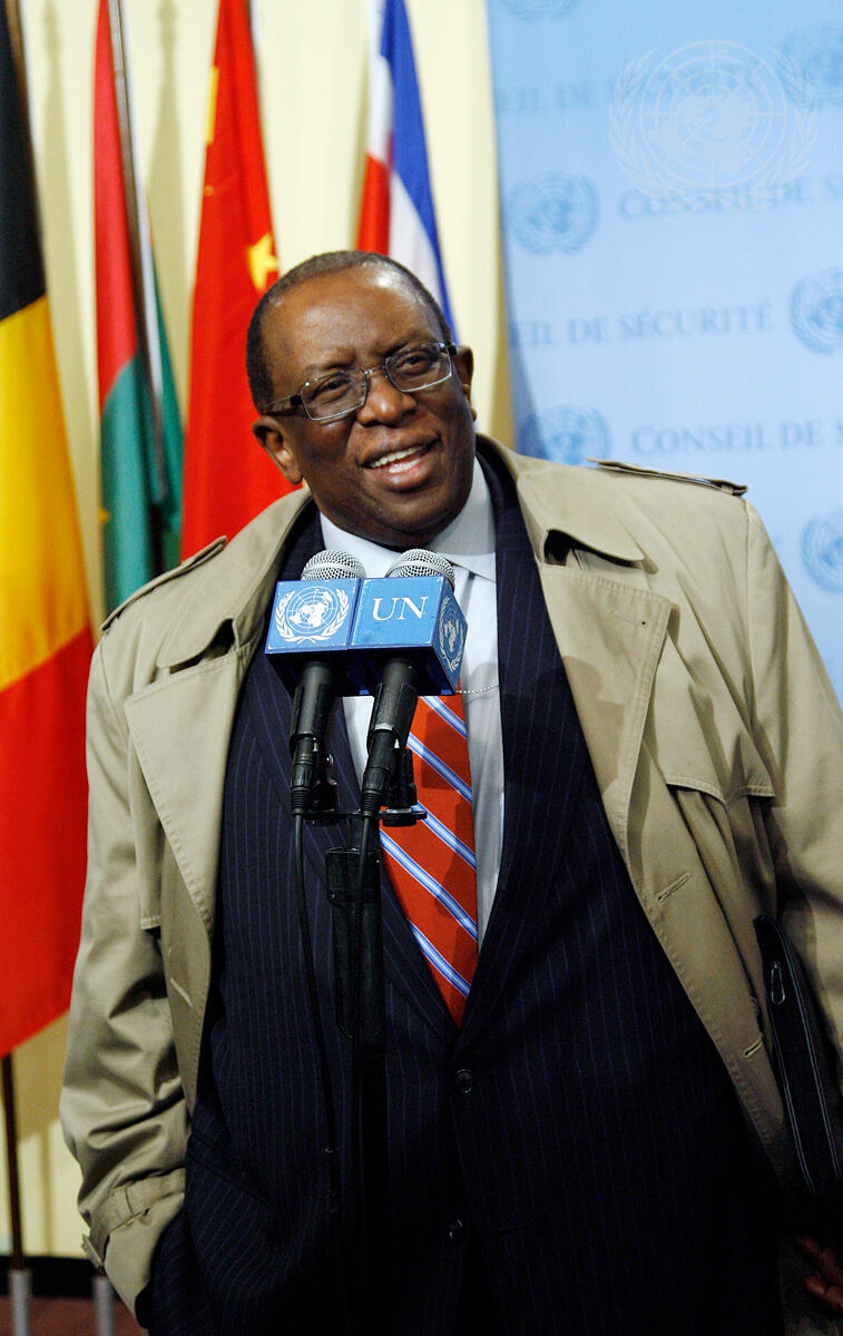 Dumisani S. Kumalo, Permanent Representative of the Republic of South Africa to the United Nations, briefs the media following a Security Council meeting on the situation in Somalia.