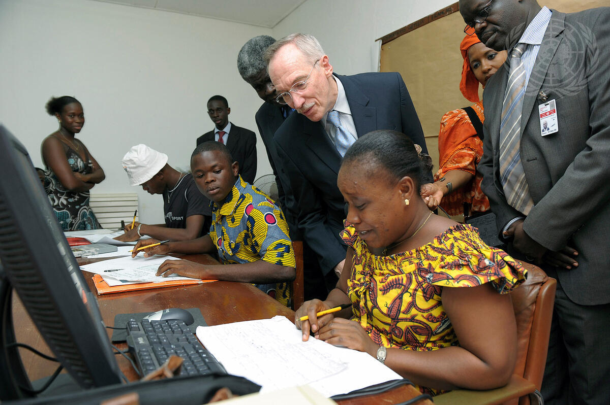 Edmond Mulet (fourth from right), Assistant Secretary-General (ASG) for Peacekeeping Operations, visits an identification centre during an assessment mission to the United Nations Operation in Côte d'Ivoire (UNOCI).