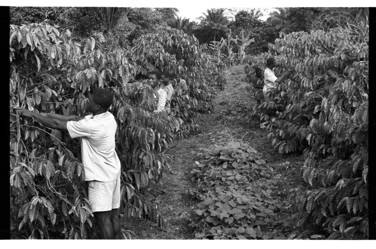 Men picking coffee beans in Nigeria. [Exact date unknown]
