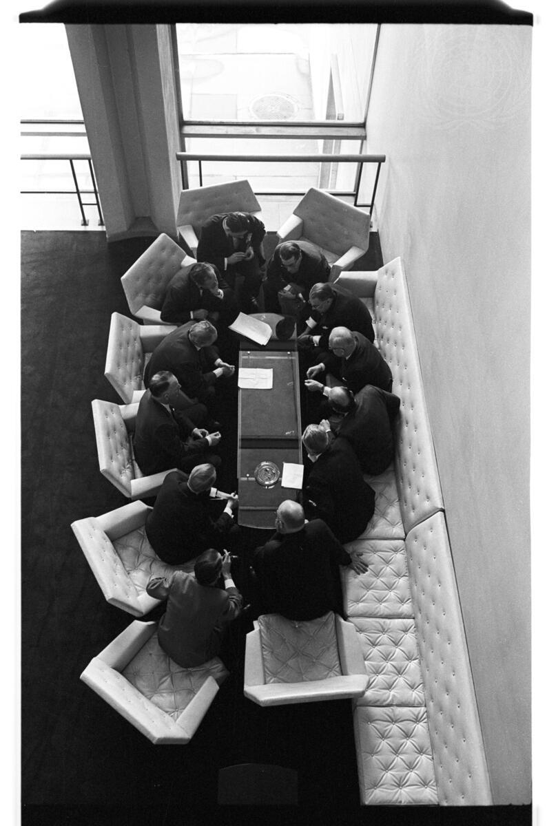 A group of the delegates, attending the 19th session of the General Assembly, confer in a lounge outside the Assembly Hall.