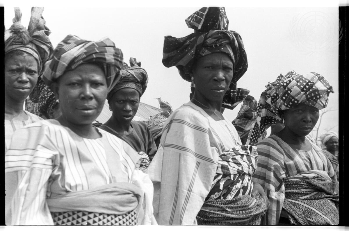 Women wearing typical Yoruba dresses in the Western Region of Nigeria.