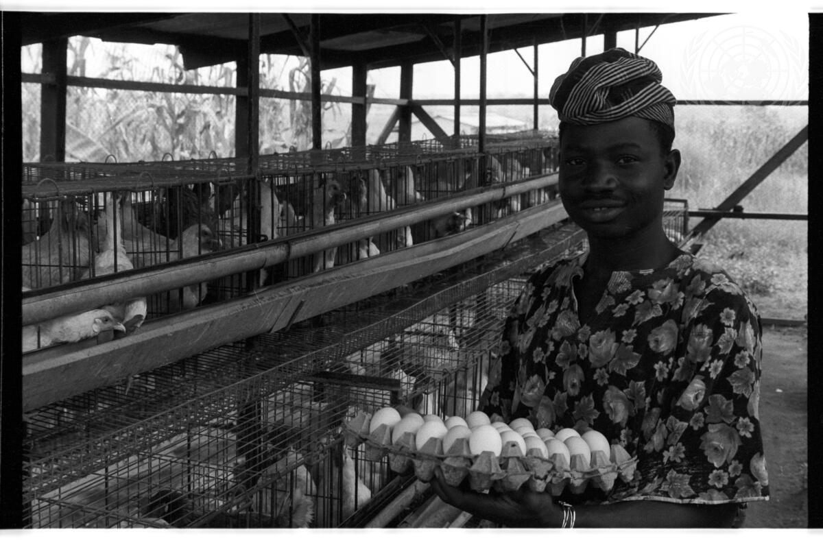 An egg collector in the Flora Farm Settlement in the Western Region. [Exact date unknown]