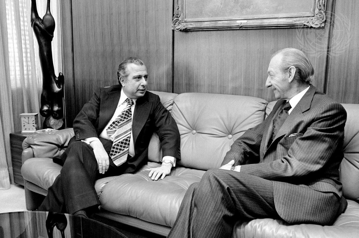 President Kyprianou (left) conferring with Secretary-General Kurt Waldheim.
