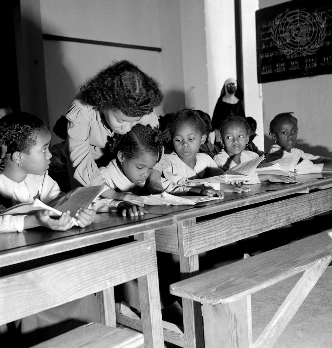 About 150 girls attend the Ste. Therese School run by Catholic nuns. The Mother Superior is French born and has spent 50 years in Haiti. All lessons are in French. First grade pupils are taught by Haitian teachers. [Exact date unknown]