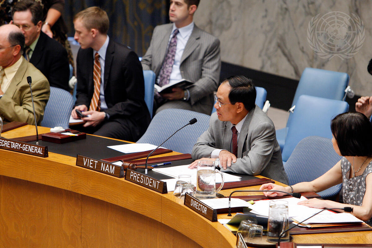 Le Luong Minh, Permanent Representative of Viet Nam to the United Nations and President of the Security Council for July, addresses a Security Council meeting during its consideration of the future of the United Nations Mission in Ethiopia and Eritrea (UNMEE).
