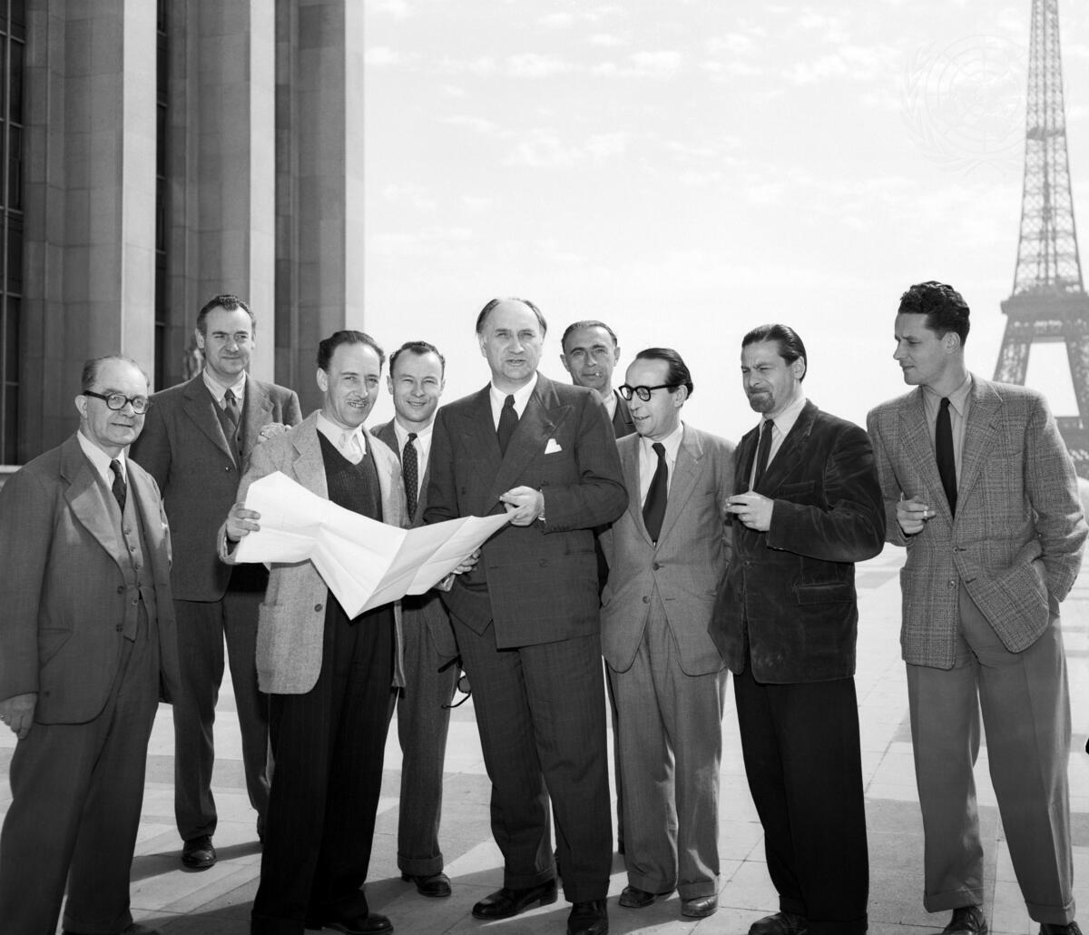 The Third Regular Session of the UN General Assembly was held at the Palais de Chaillot in Paris, France, starting in September 1948. The Palais is located near the Eiffel Tower on the site of the 1917 Paris World Fair. [No exact date, estimated]