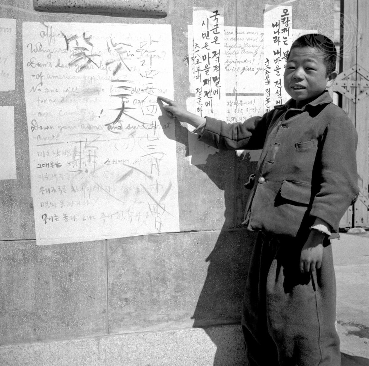 This placard on the wall of Seoul's Capitol is one of the remains of the Chinese Communist occupation; it warns the Americans of death and calls on them to surrender.