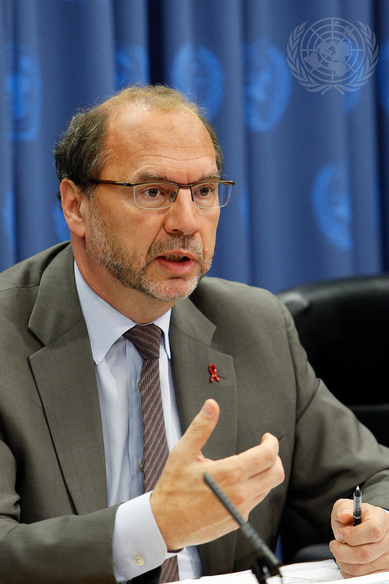 Peter Piot, Executive Director of the Joint United Nations Programme on HIV/AIDS (UNAIDS), addresses a press conference on the launch of the 2008 UNAIDS report on the global AIDS epidemic.