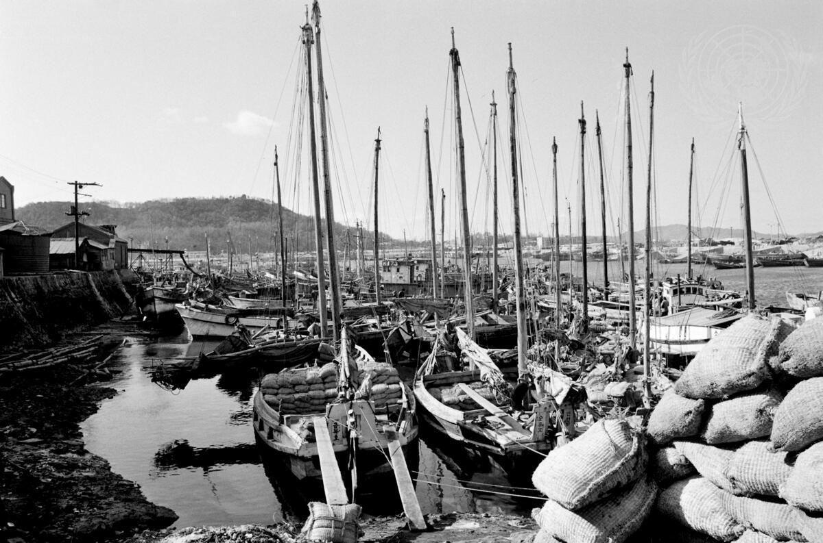 Traditional fishing boats in the port of Inchon.