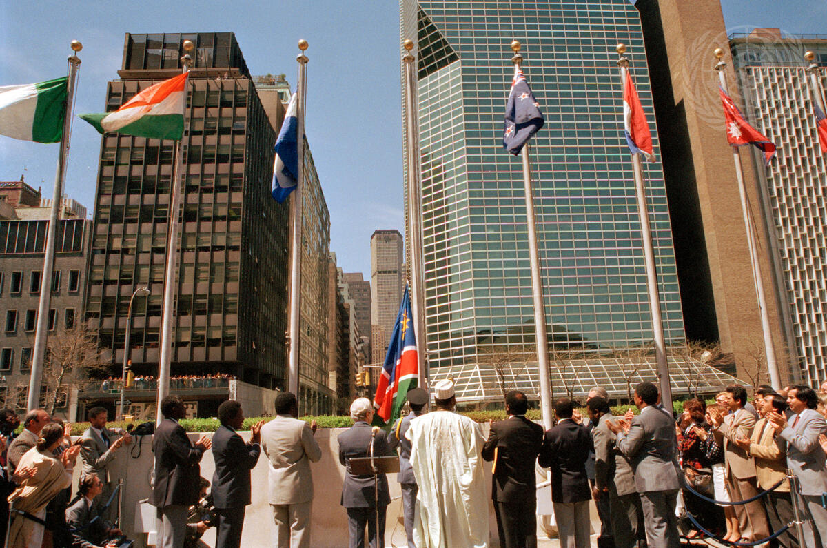 The flag of Namibia is being raised at UN Headquarters following the admission ceremony earlier today.