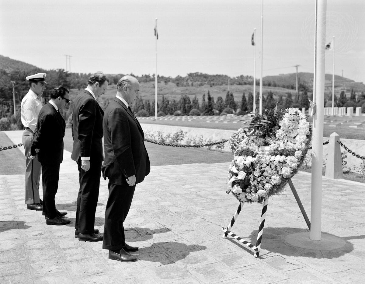 The Assistant Secretary-General for General Services David Vaughan paid a visit to the United Nations Memorial Cemetery in Korea (UNMCK) today and laid a wreath to pay homage to the soldiers of 21 nations who lie buried there. The design and maintenance of this cemetery are the responsibility of the Office of General Services.