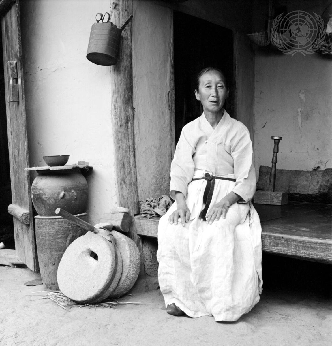 A Korean village woman on step of her home in Sapkyo Myun. A survey as part of a pilot project in community development is being conducted by a joint team representing the Church World Service (CWS) and the UN Korean Reconstruction Agency (UNKRA), preliminary to the opening of an UNKRA-built Fundamental Education Centre at Suwon, Korea.