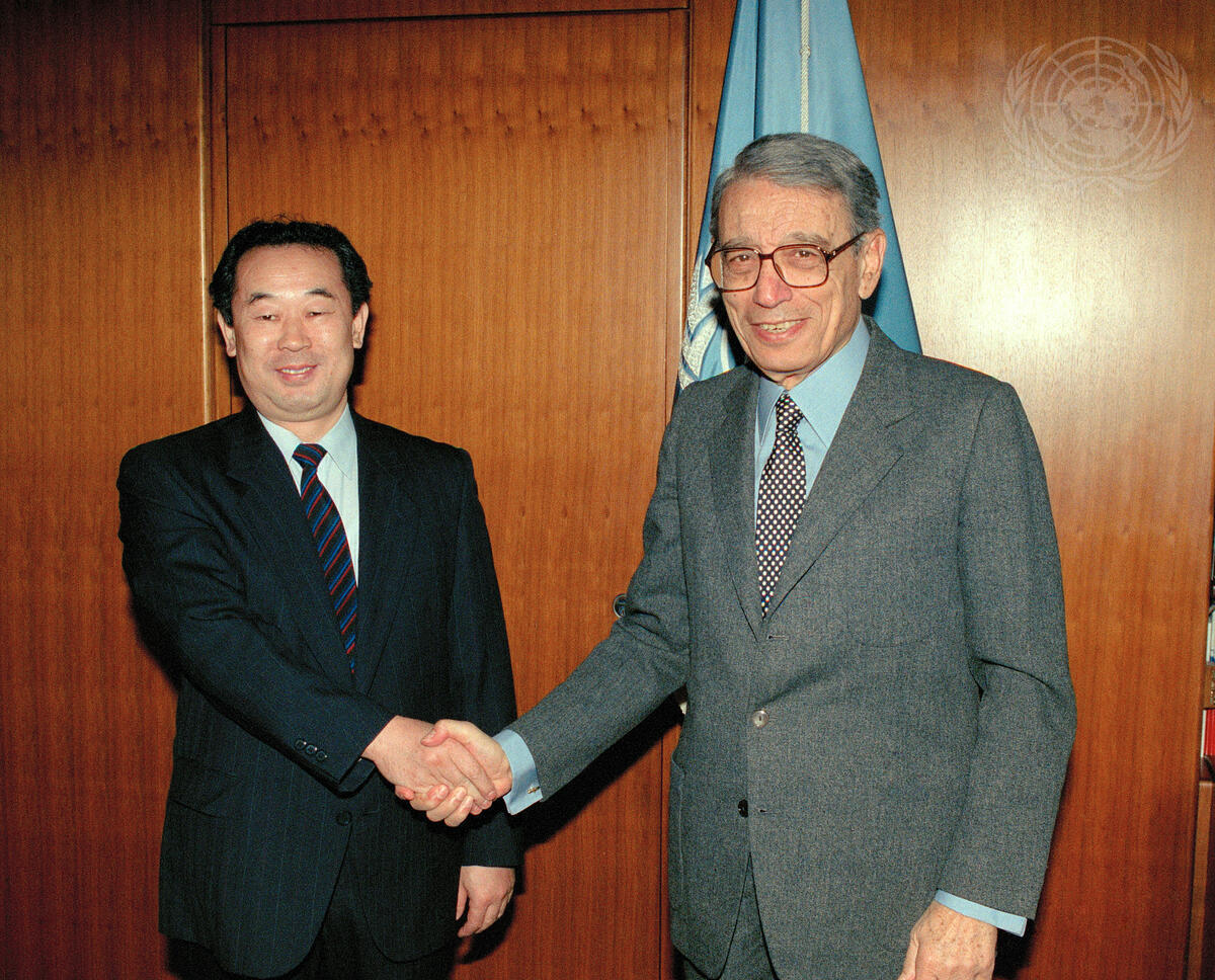 Secretary-General Boutros Boutros-Ghali (right) meets with Pak Gil Yon, Permanent Representative of the Democratic People's Republic of Korea to the United Nations.