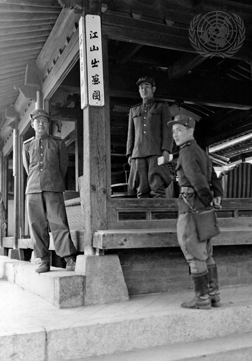 Three of the Chinese and North Korean officials who attended the preliminary Armistice Conference, at Kaesong.